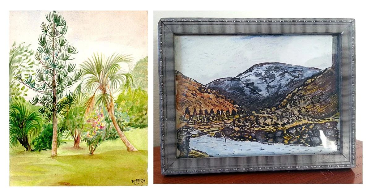 Left to Right: Painting by Bert from Burma, Mixed Media landscape by Vincent found at my Uncle’s house